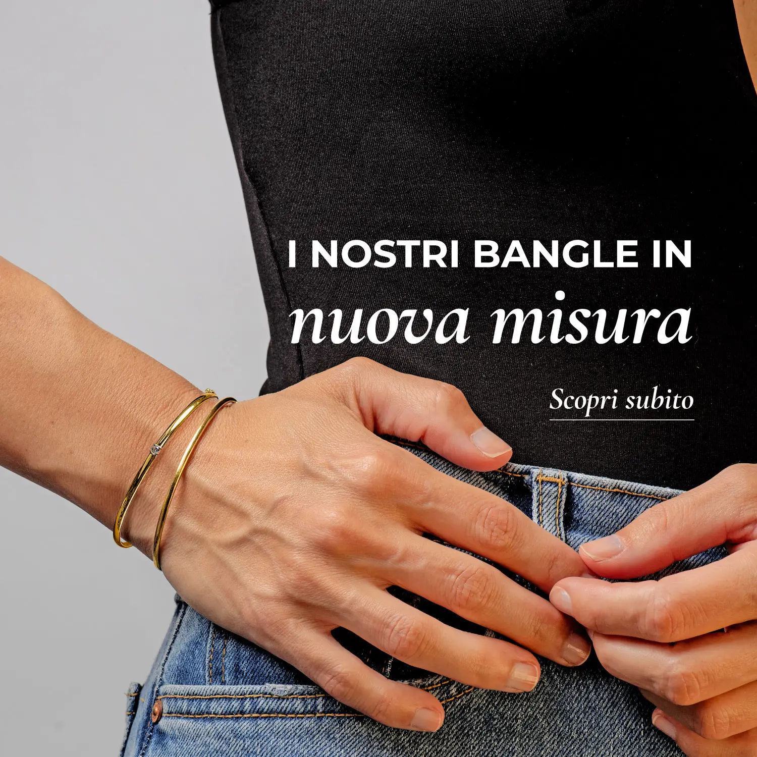 Esplora la nostra collezione di bangle in oro 14k, oro 18k e argento 925. Ogni bracciale rigido è pensato per riflettere la tua personalità, aggiungendo un tocco di luce in ogni momento. Perfetti da mixare e sovrapporre per creare un look unico e personale. Eleganza quotidiana che dura nel tempo.
