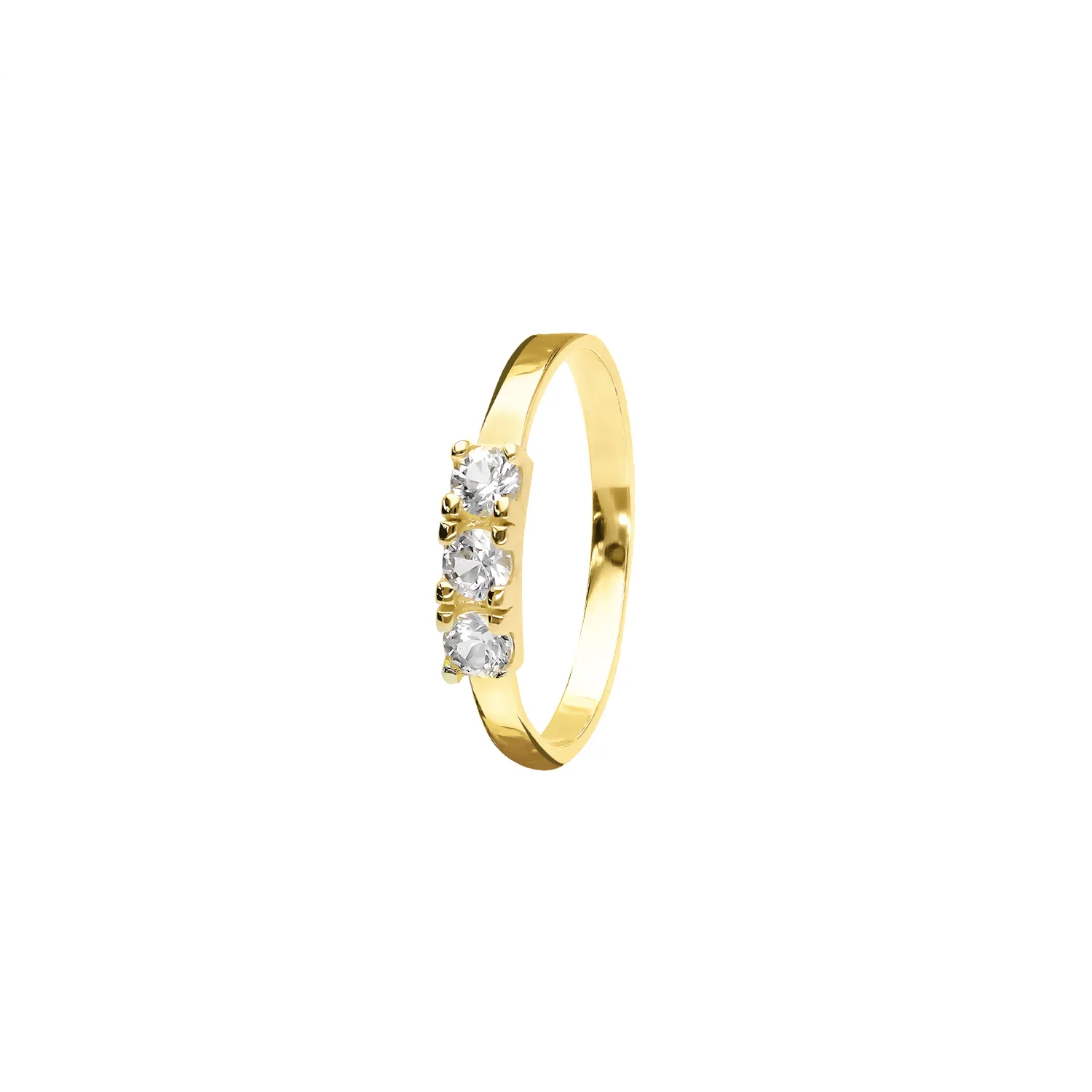 Ring aus 750/18 K Gelbgold, besetzt mit drei leuchtenden weißen Saphiren (0,43 ct).