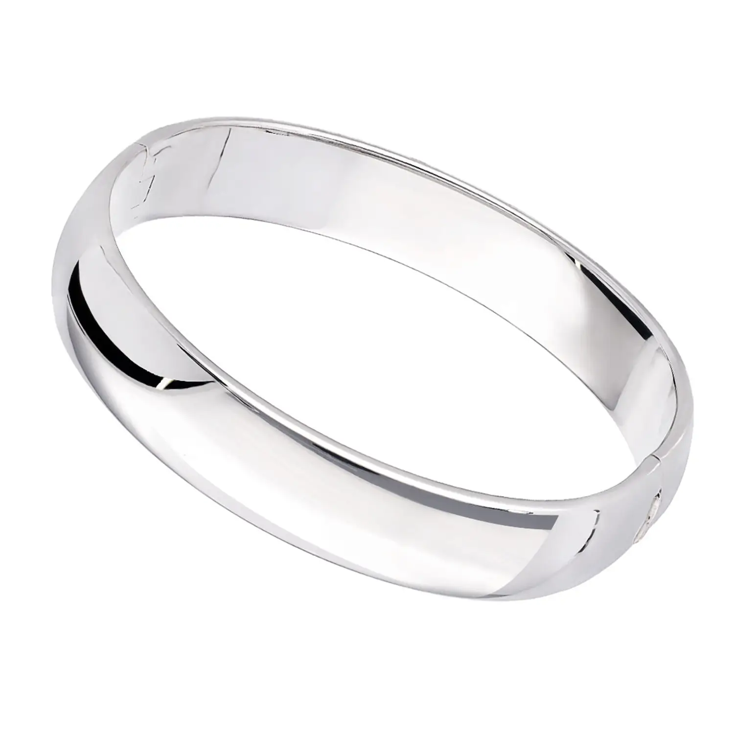 A bangle with a rounded design and a fully integrated clasp in 925 sterling silver. With its substantial volume, brightness and elegant finish, the domed bangle adds charm to any look. Its polished finish gives the piece a brilliant and precious appearance. Forme di Lucchetta bangle bracelets express the spirit and substance of Forme di Lucchetta’s goldsmithing: the spirit of those who enjoy life and want to stand out with a touch of personality, and the substance of 70 years of craftsmanship. Size: 52 by 60 mm.