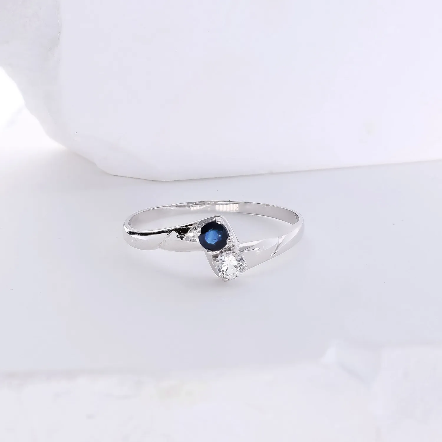 Anello in oro bianco 750-18 carati, con zaffiro blu da 0,18 ct e zaffiro bianco da 0,15 ct.