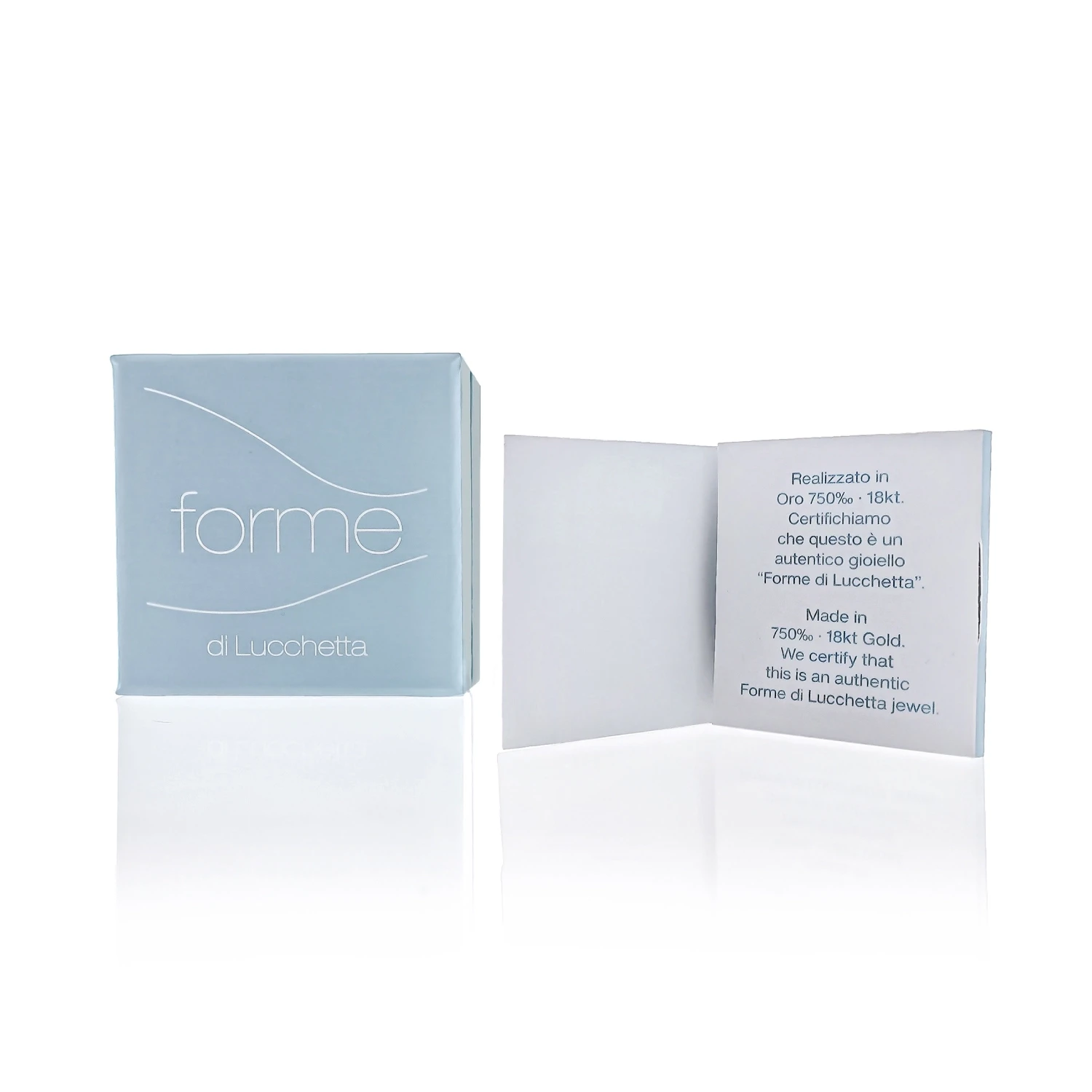 I gioielli Forme di Lucchetta sono realizzati con cura dai maestri orafi a Bassano del Grappa nel cuore del distretto orafo vicentino. Questo significa che ogni passo, dalla fusione alla lavorazione e al confezionamento, avviene internamente senza intermediari. Questo controllo diretto sulla produzione garantisce la qualità e l’autenticità dei gioielli, certificati dal punzone che riporta il codice azienda e la caratura 750.