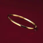 Bracciale rigido in oro giallo 750/18k da indossare tutti i giorni. Grazie alla sua doppia chiusura – a scomparsa e a otto – e al design lineare e pulito, questo braccialetto rigido sarà la tua dose quotidiana di eleganza. Indossalo da solo oppure osa di più abbinandolo ad altri bracciali. Realizzato con la massima cura e artigianalità dai maestri orafi, ogni dettaglio di questo gioiello è stato creato a mano, rendendolo un pezzo unico e prezioso. Il bangle misura 52 mm per 60 mm.