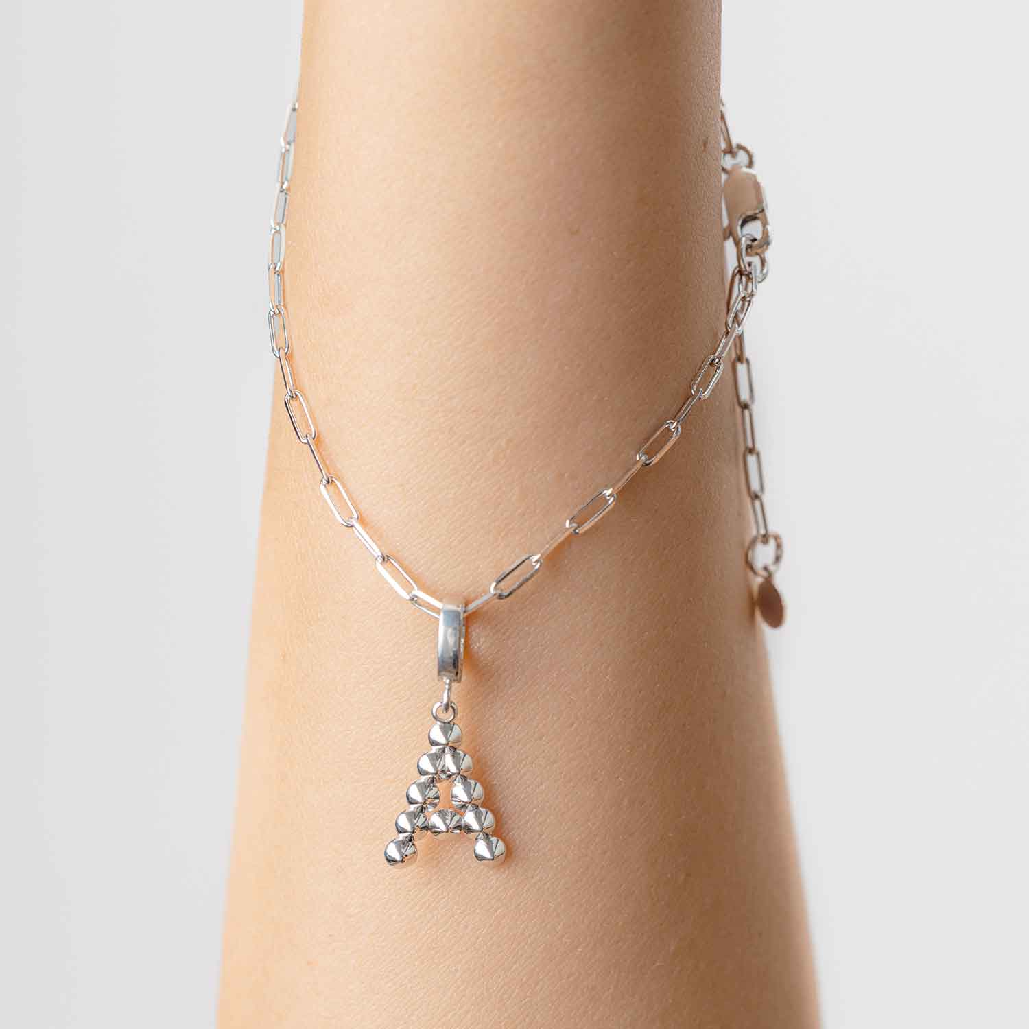 Ciondolo con iniziale R dal design contemporaneo e pattern a micro borchie. Realizzato a mano in argento sterling 925 è disponibile in argento rodiato. Il pendente ha una contromaglia apribile che permette di abbinarlo sia a collane che a bracciali. Un gioiello must-have per mostrare un po’ della tua identità e lasciare traccia di te. Un’idea regalo preziosa, perfetta per esprimere a una persona speciale la sua unicità o da regalare a qualcuno che ha un legame particolare con questa lettera. La lettera è alta 16.5 mm e la collana o il bracciale a catena sono venduti separatamente.