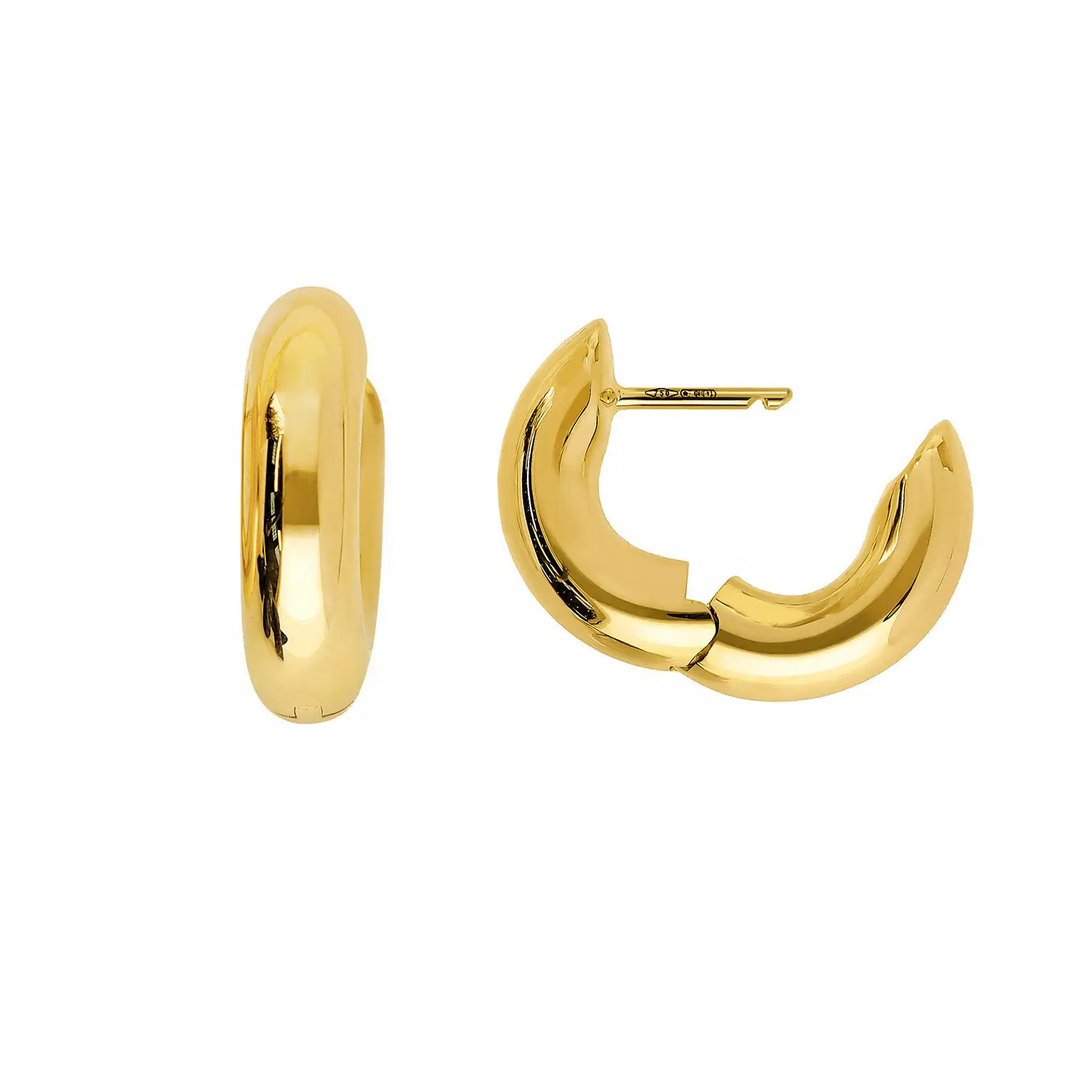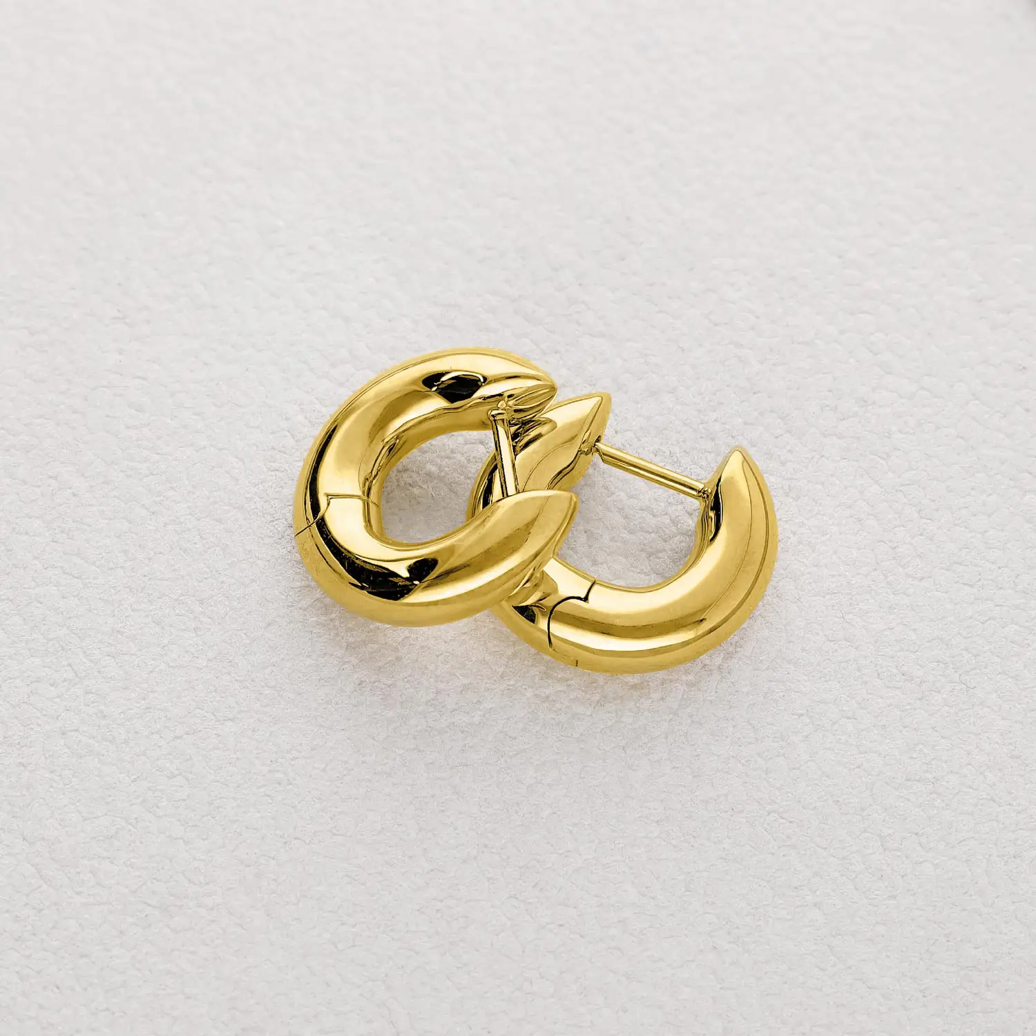 Eleganti orecchini a cerchio huggie da donna realizzati con la massima cura in oro giallo 750 – 18 carati dagli orafi Forme di Lucchetta. La finitura lucida conferisce un bagliore duraturo, rendendoli l’accessorio perfetto per un look minimalista o come base per i tuoi ear stack più audaci.